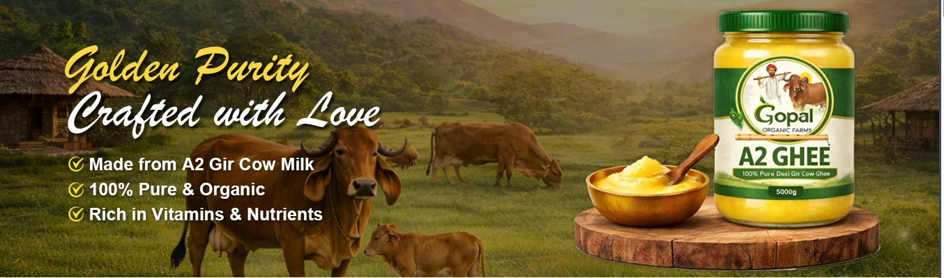 At Gopal Organic Farms, we produce pure and natural A2 Desi Cow Ghee using traditional methods to ensure quality and health benefits. Adding A2 ghee to your daily diet can improve overall wellness and lifestyle.